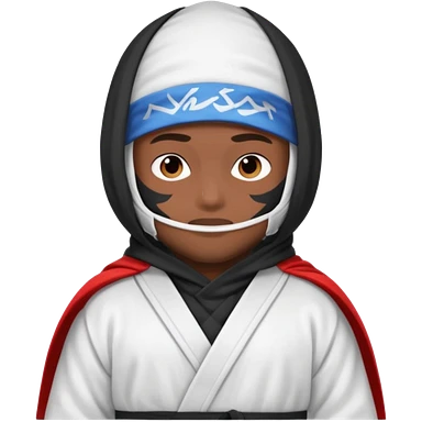 All white ninja robe with white mask to cover face and neck with a hoodie on and dark brown skin color emoji