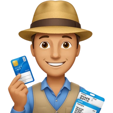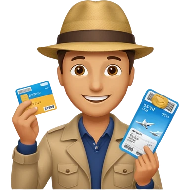 A person holding a suitcase and a plane ticket, requesting for travel duty flight, colorful and vibrant emoji