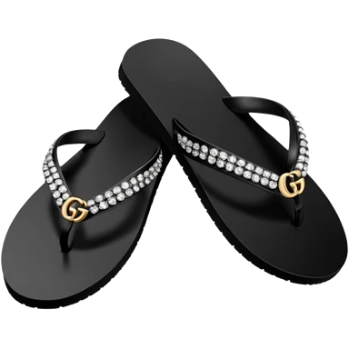 gucci, black with diamond crystal embellishments, flip flops emoji