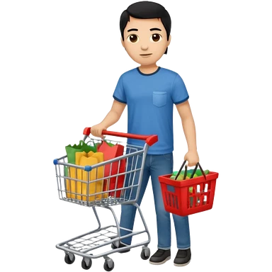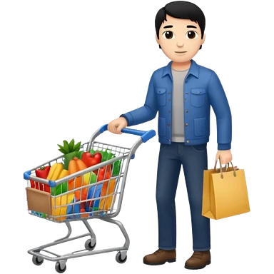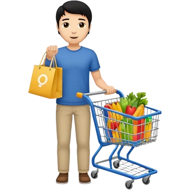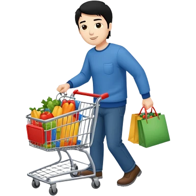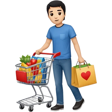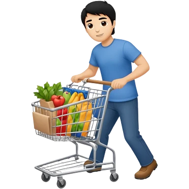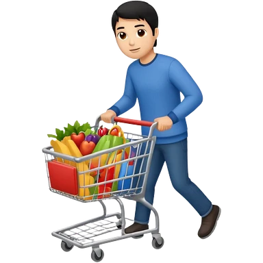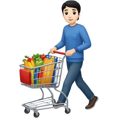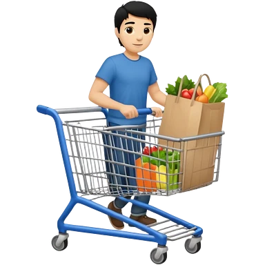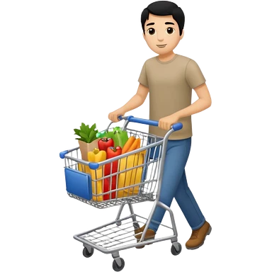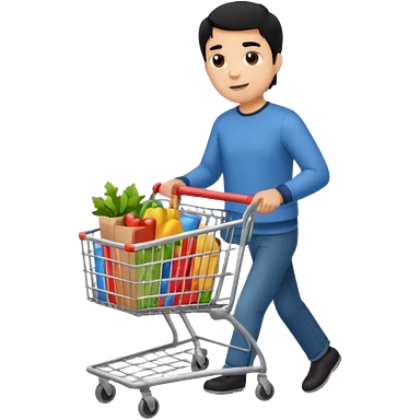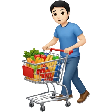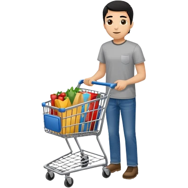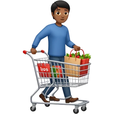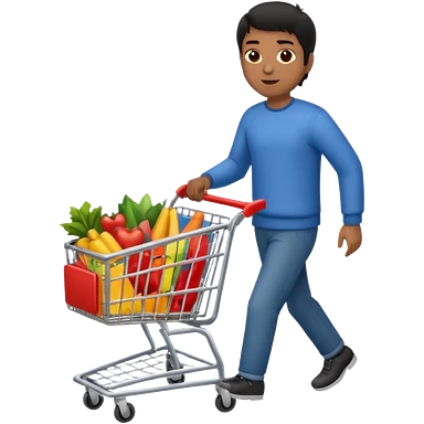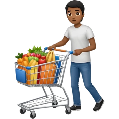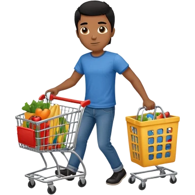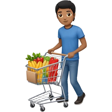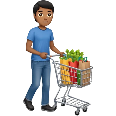 man-with-a-shopping-cart-full-body black hair light brown skin emoji
