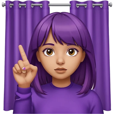 Tanned Girl with purple and brown hair straight hair with curtain bangs flipping bird finger with ball and rolling her eyes emoji