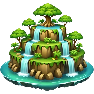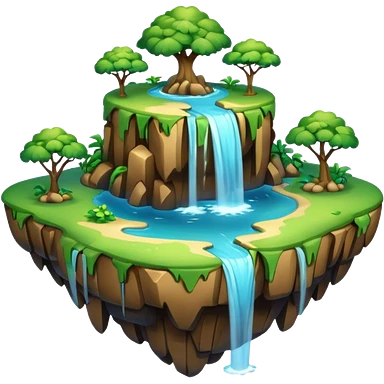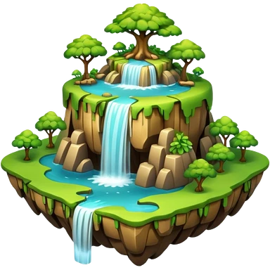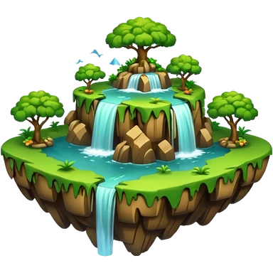a 2d smooth not too dertailed cartoon floating island emoji with waterffalls of the sides emoji