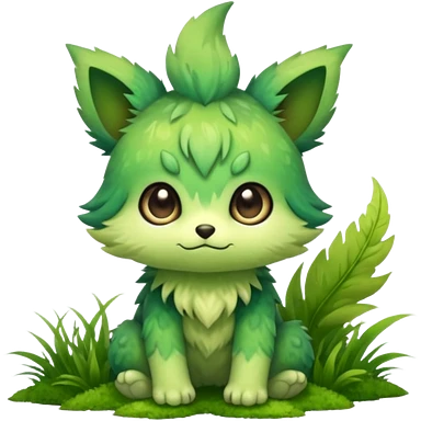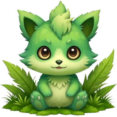Pastel warm mossy grassy elemental fantasy colorful-green-brown-gradient anime-styled edgy cool badass cute random Fakémon-creature, with random markings, full body emoji