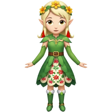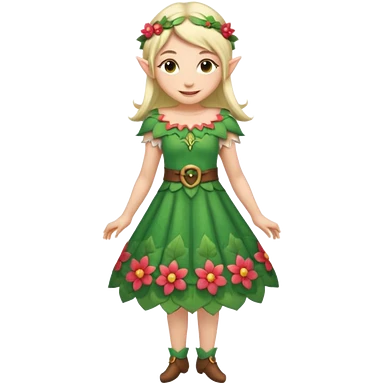 elf wearing flower pattern dress,full body. emoji
