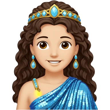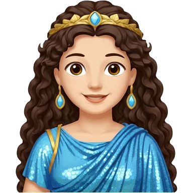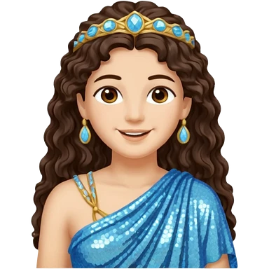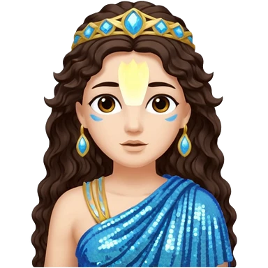 Minerva, Goddess of Wisdom from Roman Deities with long dark brown wavy hair, light blue sequin toga emoji