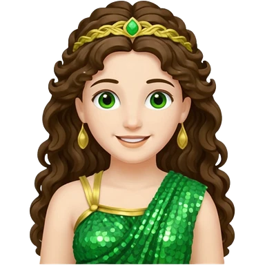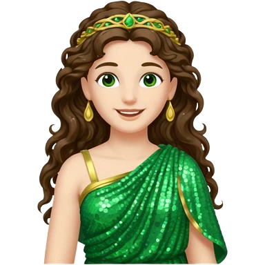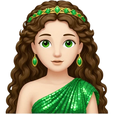 Terra, Goddess of Earth from Roman Deities with long brown wavy hair, green sequin toga emoji