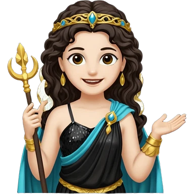 Salacia, Goddess of Seawater from Roman Deities with long jet black wavy hair, aquamarine sequin toga emoji