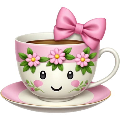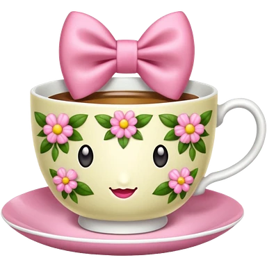 Floral teacup with pink bow emoji