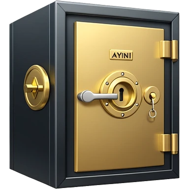 A secure vault door with the AYNI Gold logo at its center lock, glowing subtly. Flat design, metallic gold tones, black background, small “AYNI Gold” tag on the lower edge emoji