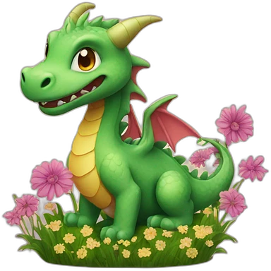 girl with brown bob picking flowers on a flower field. On her side is a bernese mountain dog. emoji
