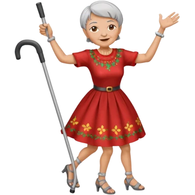 old woman with short hair dancing with crutches emoji