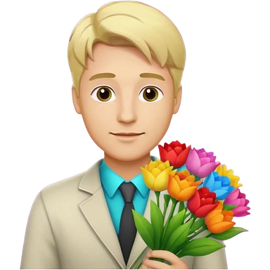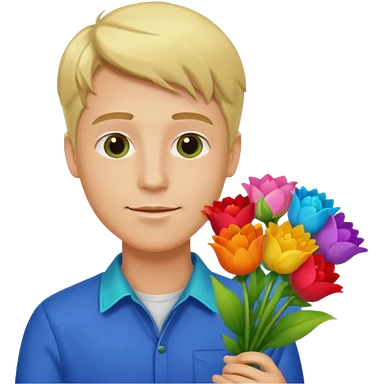 blonde man flower-holding person bouqet emoji