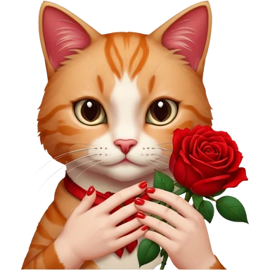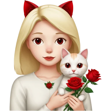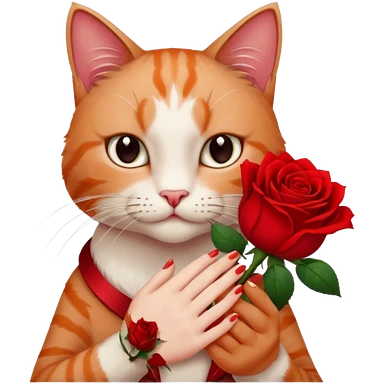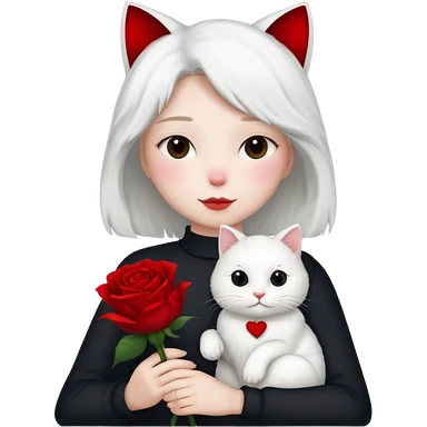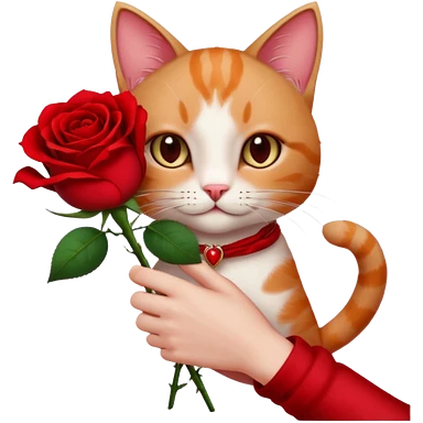Flower 🌹in hand whiteout face in hand cat emoji