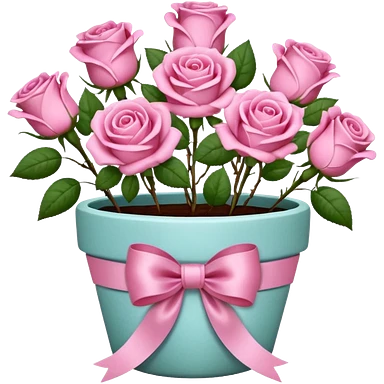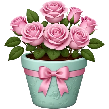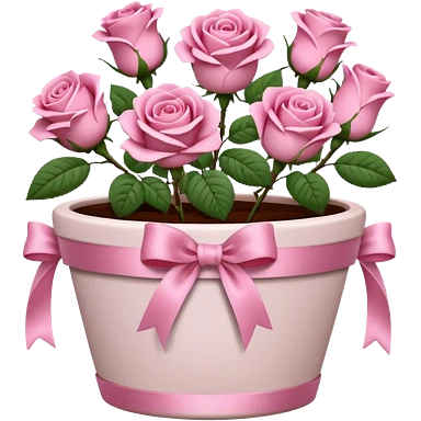 Flower pot with pink roses and ribbon emoji | AI Emoji Generator