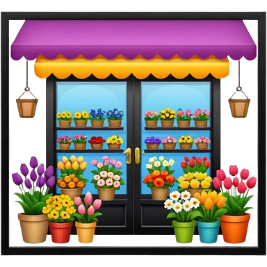 3D isometric exterior little beige and white corner flower shop with abundant pastel florals everywhere emoji