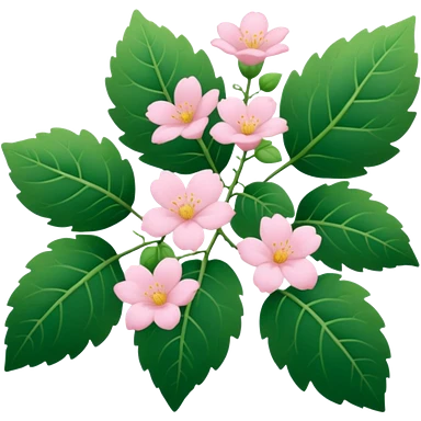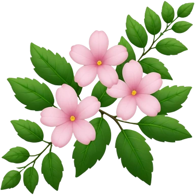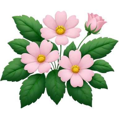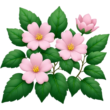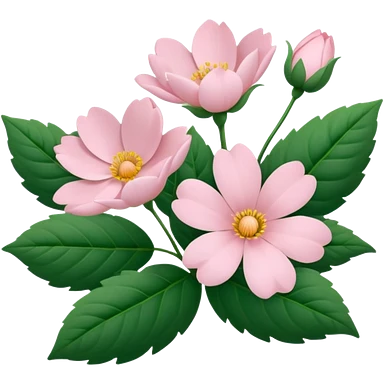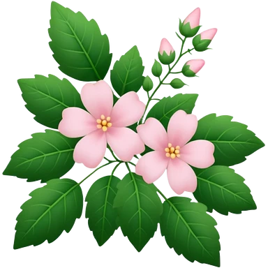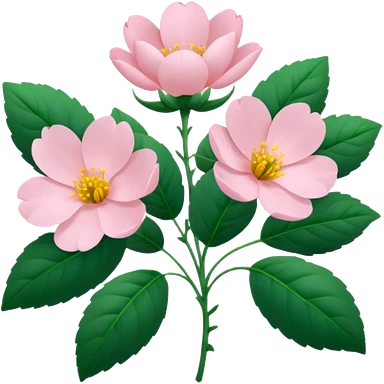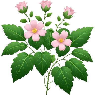 Aesthetic flowers and plants growing from the ground in colours of soft pink matching the deep green leaves (to describe/match with the word flourish) more of a wild bush or vine emoji