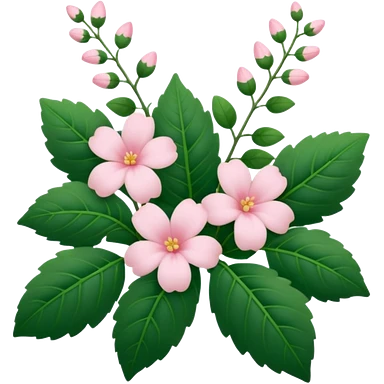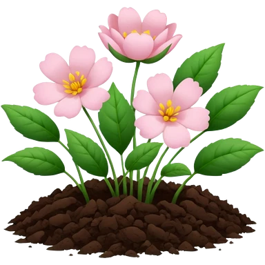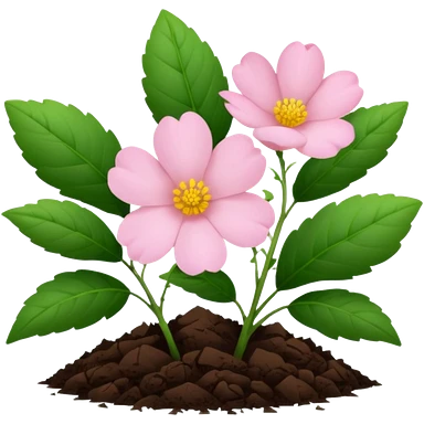 Aesthetic flowers and plants growing from the ground in colours of soft pink matching the deep green leaves (to describe/match with the word flourish) emoji
