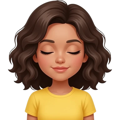 fluffy hairs girl with close eyes change her shirt color into yellow and hairs dark brown emoji