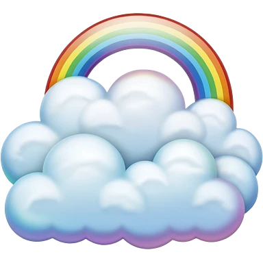 3d rendering, isolated, opalescent pearlescent colored, perfectly shaped, soft fluffy clouds, with half of a rainbow peeking from behind the clouds dpi 300, 8k emoji