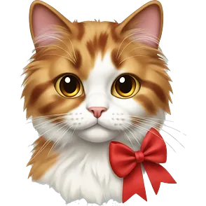 calico cat fluffy with a red bow emoji