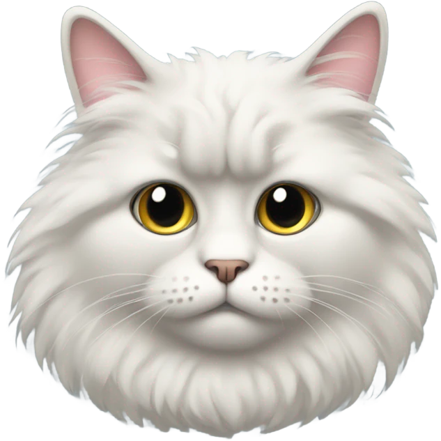 Cinematic Comical White Persian Cat Portrait Emoji, Head tilted playfully with a touch of sass, fluffy white fur with subtle hints of cream and golden tones, Simplified yet hilariously chubby features, highly detailed, glowing with a warm, friendly glow, high shine, a mix of lazy and curious, stylized with a touch of whimsy, bright and endearing with a comical expression, soft glowing outline, capturing the essence of a mischievous yet chubby, fluffy kitty, so endearing it feels like it could stretch out of the screen and demand attention with its cheeky charm! emoji