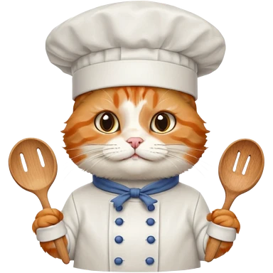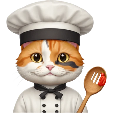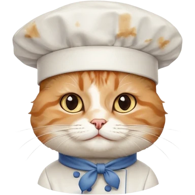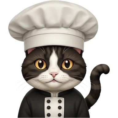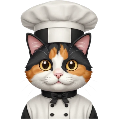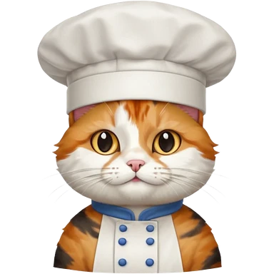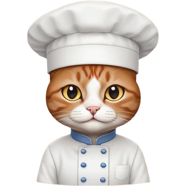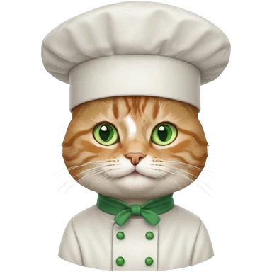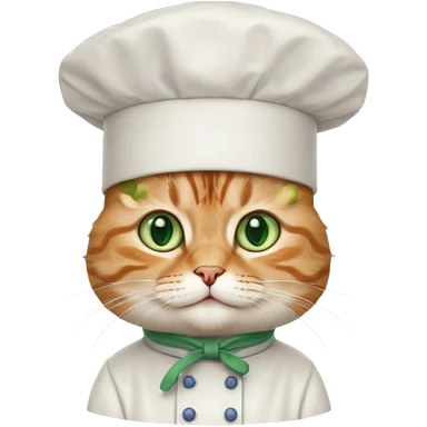 fluffy chef cat wearing a tall white chef hat emoji | AI Emoji Generator