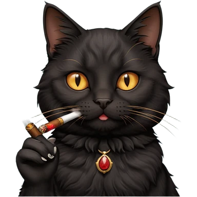fluffy black cat smoking a cigar emoji