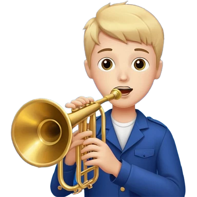 Boy holding trumpet with American flags and fireworks behind him emoji