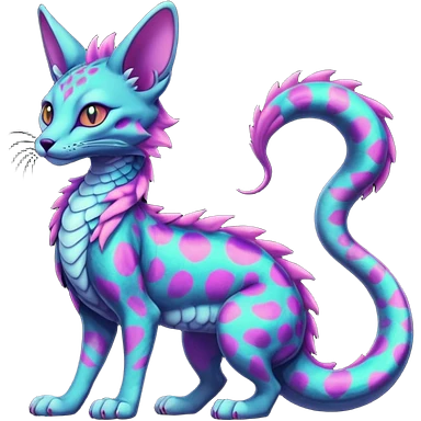 Flurry furry colorful dark edgy gloomy dusky scaly sergal-serval-possum-sphynx-Koi-sergal-fusion-animal-hybrid-creature with a snake-tail emoji | AI Emoji Generator