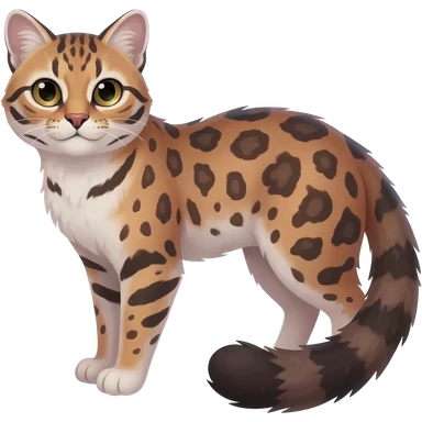 Beautiful fluffy dark gloomy edgy cool pastel elegant spotted dotted thick puffy hyper-realistic lifelike furry Indigo, purple, violet, pink, Civet-Genet-Possum-Serval-Caracal-Sergal-Trico-Numbat-Furret-fusion-Fakemon-hybrid-creature (full body) with long tufted ears and a striped tufted tail emoji