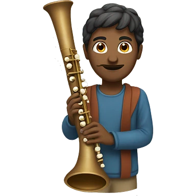 Flute+man with curly hair, wearing a grey hoodie+light brown skin+ emoji
