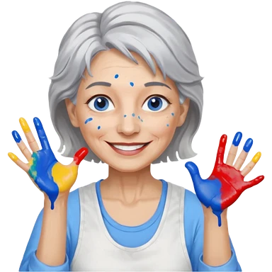 FEMME 65 ET PLUS CHEVEUX GRIS, YEUX BLEU ARTISTE PEINTRE emoji