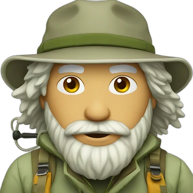 old fisherman with gray beard, fishing rod and hat emoji