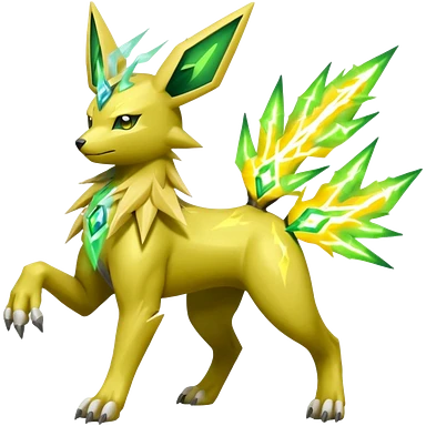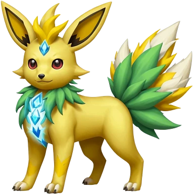 Exotic Ivy Dragonic Feathery Scaly Meloetta-Manectric-Leafeon-Electrike-Jolteon-Zygarde-Renamon-hybrid-fusion-Fakémon-creature, full body emoji