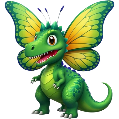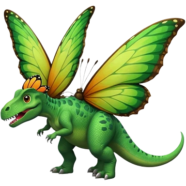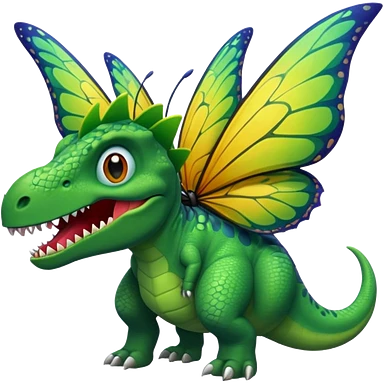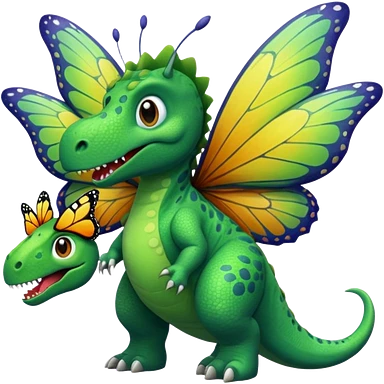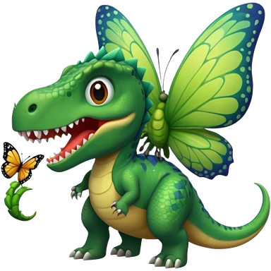 A dinosaur chewing on a huge butterfly emoji
