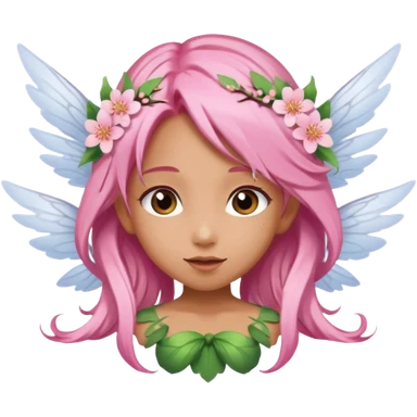 A flower fairy girl with long, light cherry blossom pink hair, wings, and a flying posture. emoji