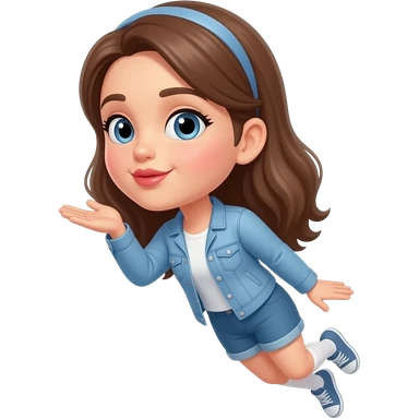 A cute girl with brown hair and brown eyes giving a flying kiss emoji