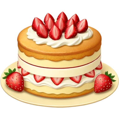 strawberry sponge cake with whipped cream and flowers emoji