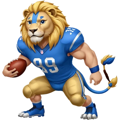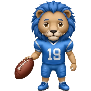 full blue color lion, blue face, wearing blue american football jersey emoji