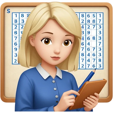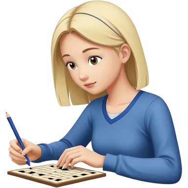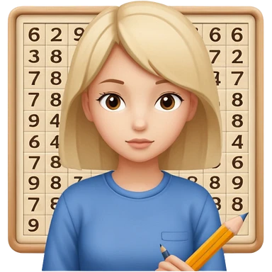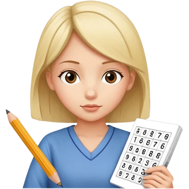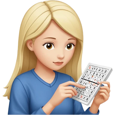 Girl Sudoku Problem-Solving on the new paper, side view. emoji