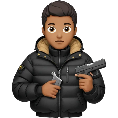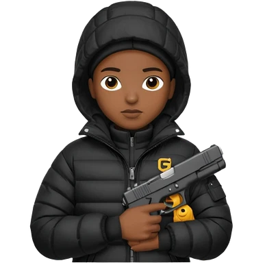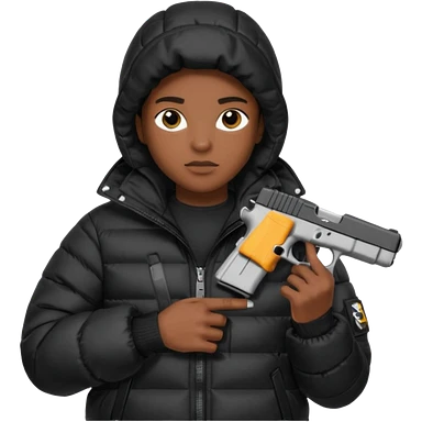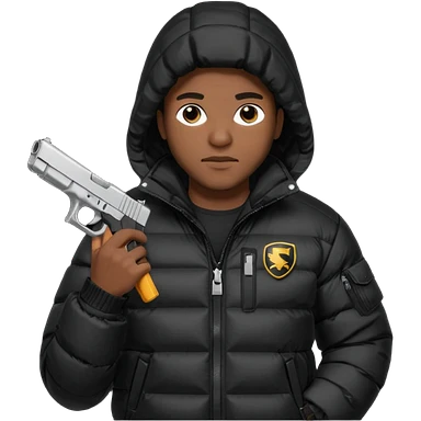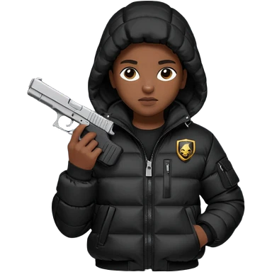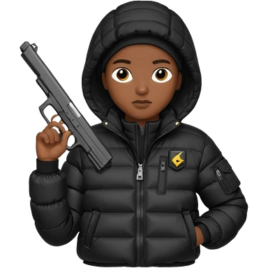african american wearing a black puffer jacket with the hood on and holding a glock 26 emoji