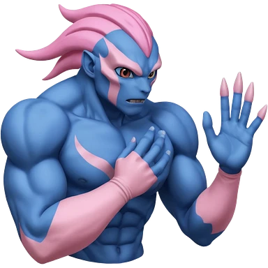 Ein Emoji im klassischen Apple Emoji Stil eines blauen, leicht cartoonhaften T-Rex mit stark betontem Überbiss und scharfen weißen Zähnen. Der T-Rex trägt ein Headset wie eine typischer Customer Service Person. Der Dinosaurier wird aus einem humorvollen Blickwinkel präsentiert und hält einen lustigen, leicht verwirrten Ausdruck. Lege ganz besonderen Fokus auf den Überbiss emoji