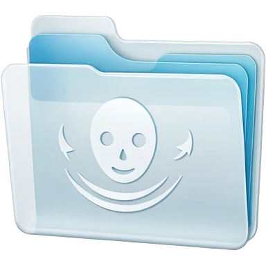 A simple icon of a transparent white plastic folder, minimal and clean, with rounded corners, subtle translucency, soft shading, and a small self-care, skincare, routine documents symbol on the front emoji