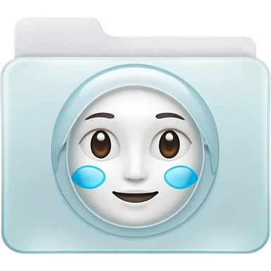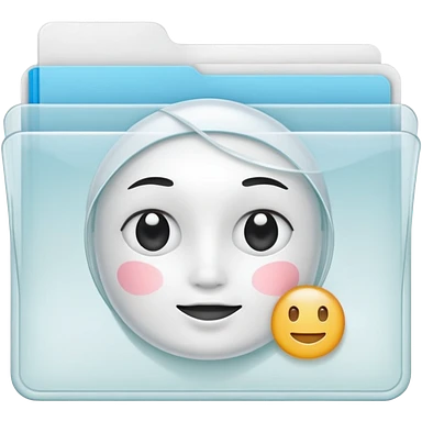 A simple emoji-style icon of a transparent white plastic folder, minimal and clean, with rounded corners, subtle translucency, soft shading, and a small self-care documents symbol on the front emoji