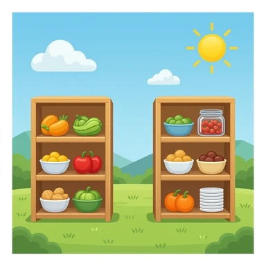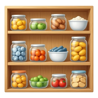 food pantry light wood shelves emoji
