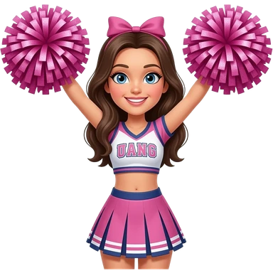 football cheerleader, holding big cheering poms in two hands pink and twinkle emoji