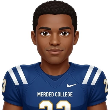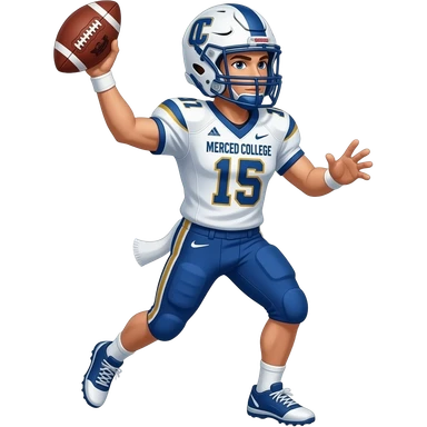Football player in merced college uniform make him white with brown hair and in a helmet throwing the football emoji