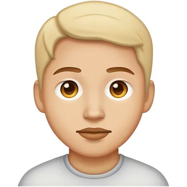 a 13 year old boy smiling with blue eyes and pale tan skin color, straight hair covering fore head brown emoji