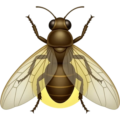 Cinematic tiny glowing firefly, round and chubby, soft golden light, tiny happy face, gentle floating motion, surrounded by dreamy sparkling dots. emoji
