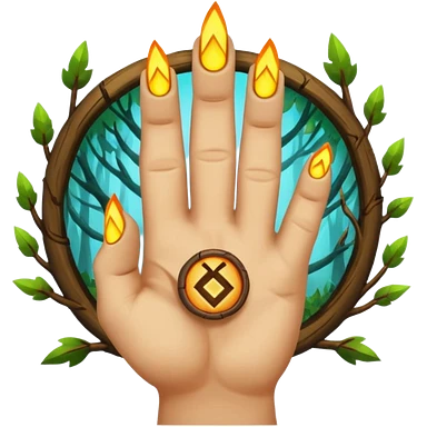 forest character hand out stop gesture glowing rune palm emoji | AI Emoji Generator